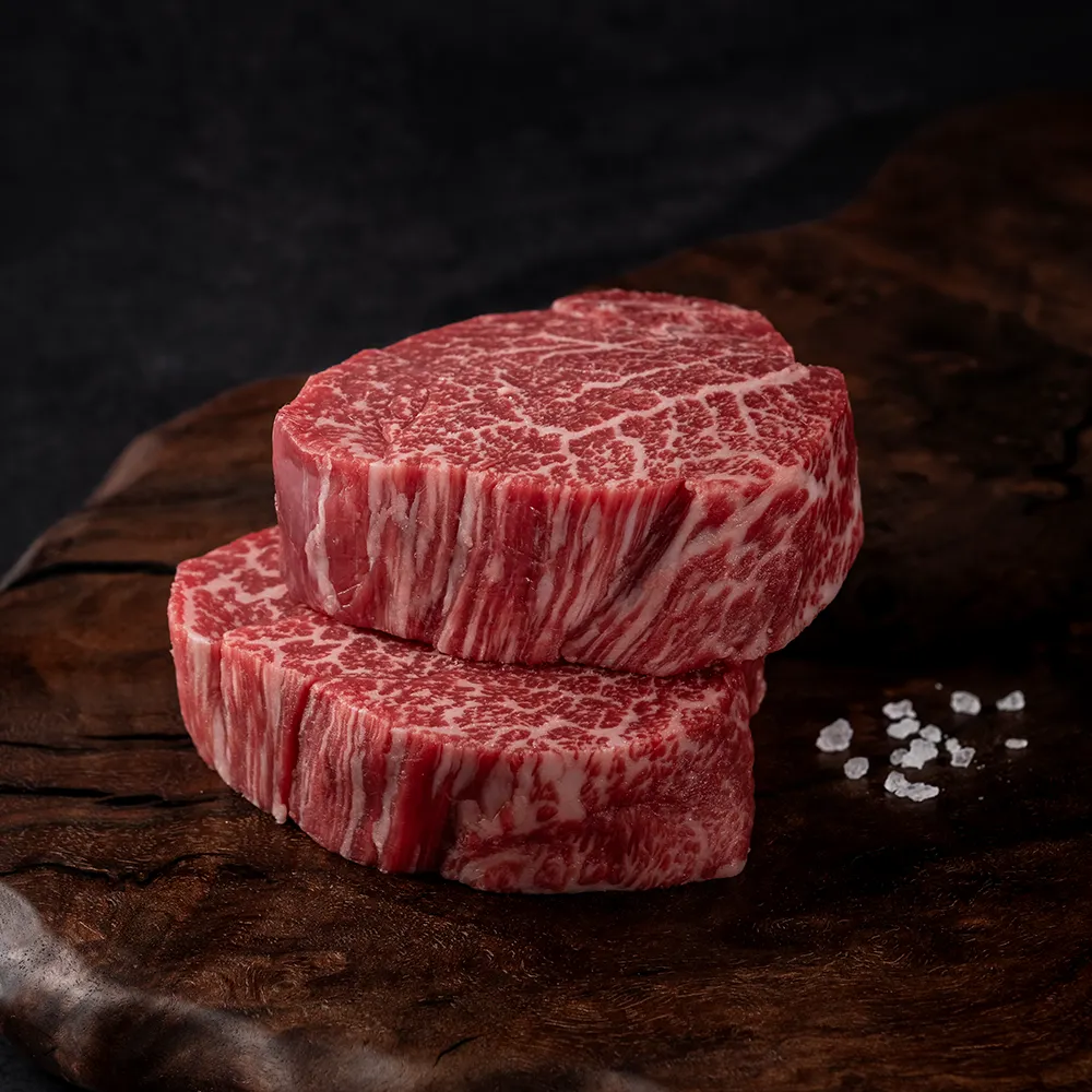 약 30일간의 숙성을 거친 안심은 지방이 적고 매우 담백하며 부드러운 맛을 냅니다.