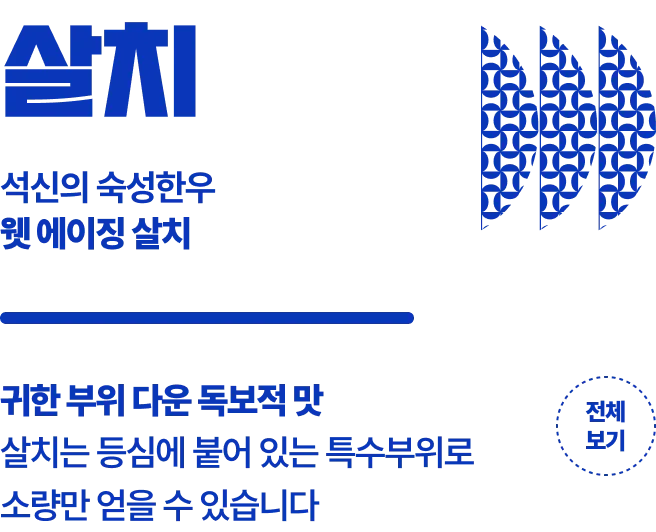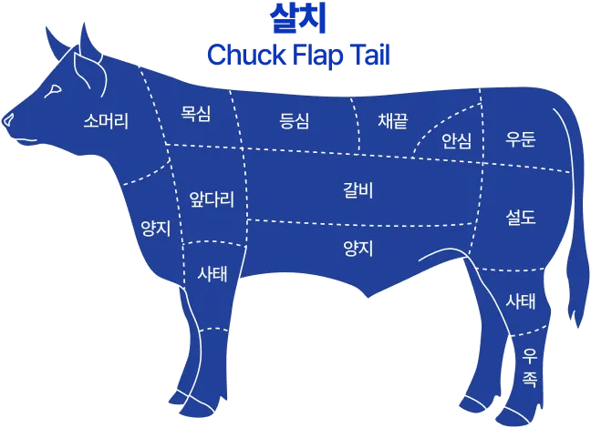 살치살은 소 한마리에서 1~2 kg만 얻을 수 있는 아주 귀한 부위입니다. 풍부한 마블링으로 부드러움의 끝판왕이라 할 수 있습니다.