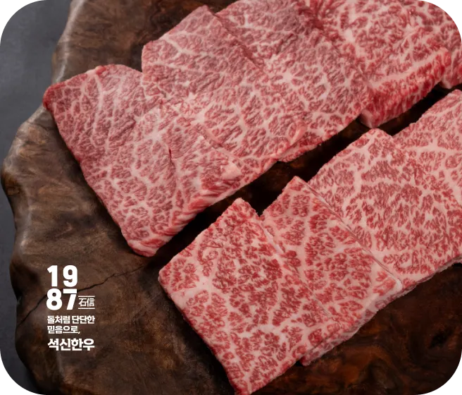 석신한우 숙성육의 장점은 다양한 컨디션의 원육이 가지는 맛의 편차를 최대한 줄이고 수분이 줄어들며 농축된 단백질은 감칠맛을 끌어 올려줍니다. 석신의 숙성한우에 대한 고객님들의 만족도는 높으며, 사람에 따라 부드러운 버터맛이 느껴질 정도로 깊고 진한 육즙이 특히 좋다는 평가를 받고 있습니다.