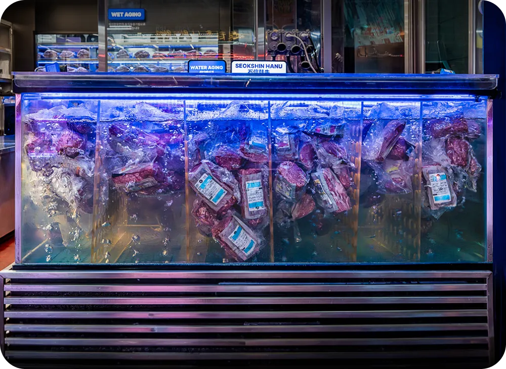 그는 당시 마장축산물시장에는 생소한 Water Aging, Wet Aging 등 최신 숙성 기법을 최초로 적용하였습니다. 막대한 설비 투자 비용과 시간을 들였고 무수한 시행착오를 거쳤습니다. 많은 사람들의 우려와 의심의 눈초리에에도 묵묵히 전진했습니다. 마침내 석신한우의 정성어린 숙성육의 맛에 많은 고객들의 호평과 인정이 이어졌습니다.